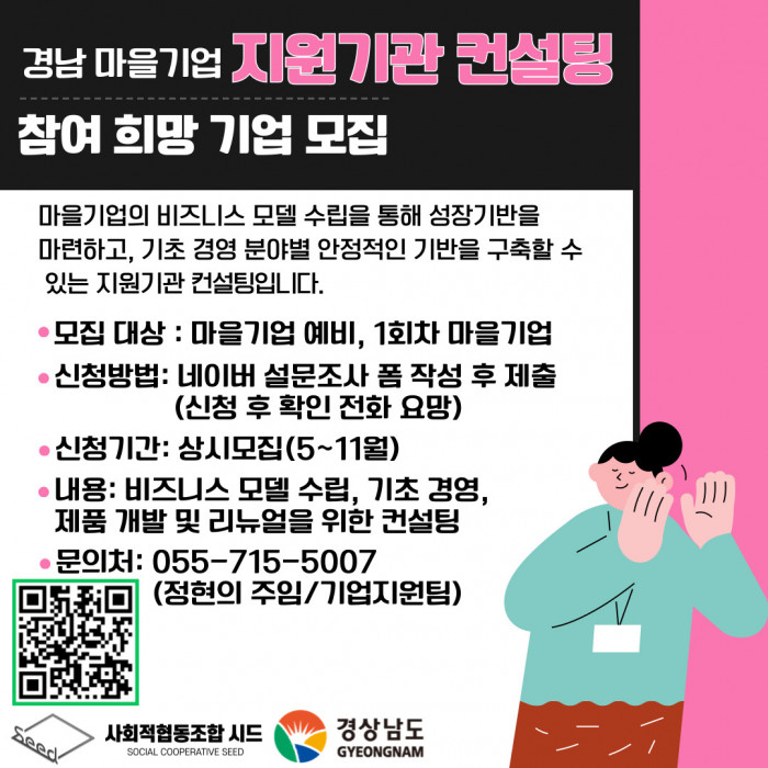 경남 마을기업 지원기관 컨설팅 참여를 희망하는 기업을 모집합니다.